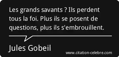 Les grands savants ? Ils perdent tous la foi. Plus ils se posent de questions, plus ils s'embrouillent.