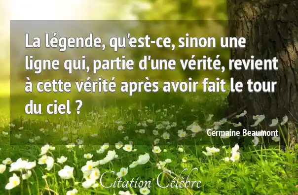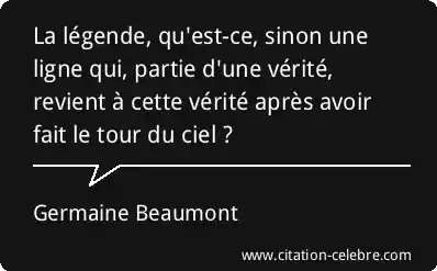 La légende, qu'est-ce, sinon une ligne qui, partie d'une vérité, revient à cette vérité après avoir fait le tour du ciel ?