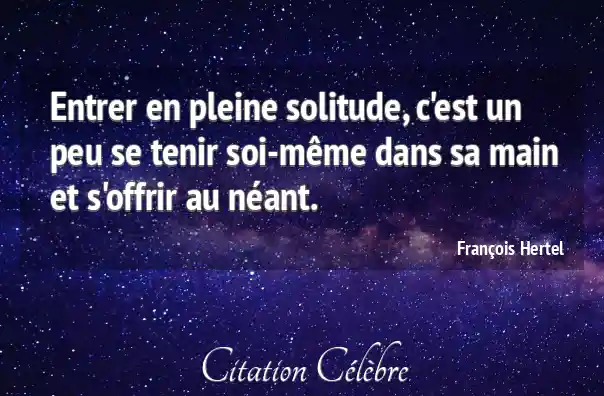 Entrer en pleine solitude, c'est un peu se tenir soi-même dans sa main et s'offrir au néant.