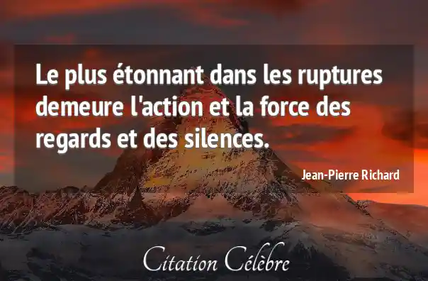 Le plus étonnant dans les ruptures demeure l'action et la force des regards et des silences.