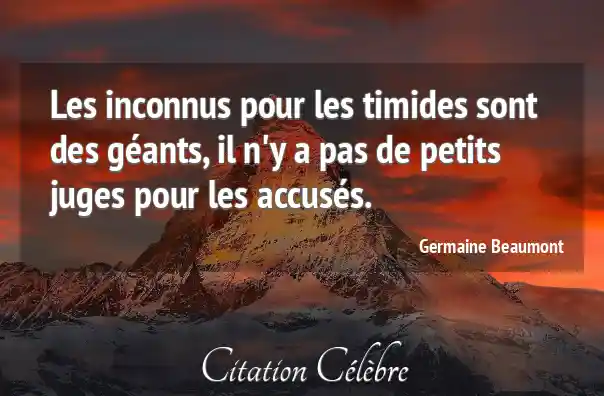 Les inconnus pour les timides sont des géants, il n'y a pas de petits juges pour les accusés.