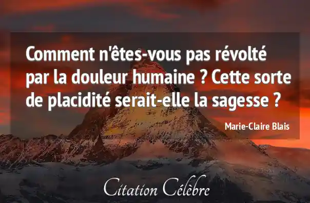 Comment n'êtes-vous pas révolté par la douleur humaine ? Cette sorte de placidité serait-elle la sagesse ?