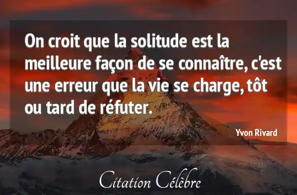 On croit que la solitude est la meilleure façon de se connaître, c'est une erreur que la vie se charge, tôt ou tard de réfuter.