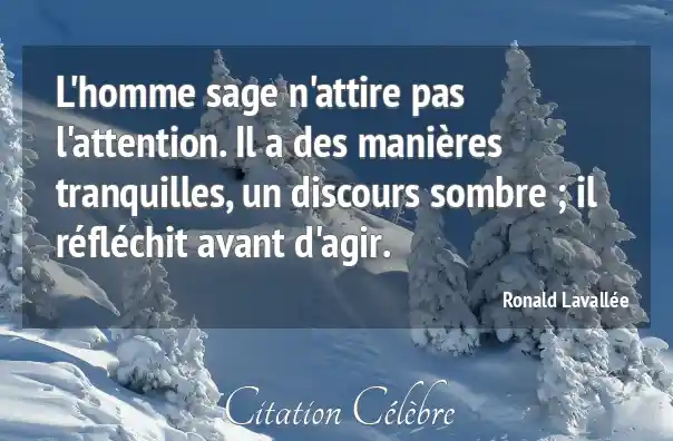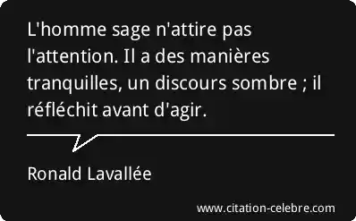 L'homme sage n'attire pas l'attention. Il a des manières tranquilles, un discours sombre ; il réfléchit avant d'agir.