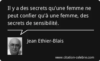 Il y a des secrets qu'une femme ne peut confier qu'à une femme, des secrets de sensibilité.