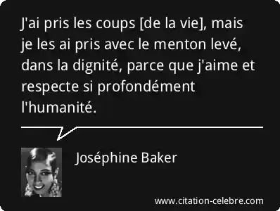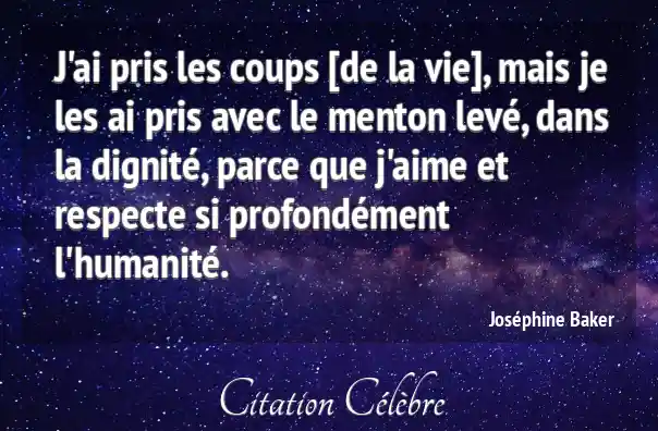 J'ai pris les coups [de la vie], mais je les ai pris avec le menton levé, dans la dignité, parce que j'aime et respecte si profondément l'humanité.