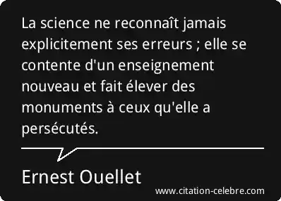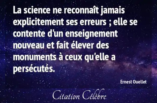 La science ne reconnaît jamais explicitement ses erreurs ; elle se contente d'un enseignement nouveau et fait élever des monuments à ceux qu'elle a persécutés.