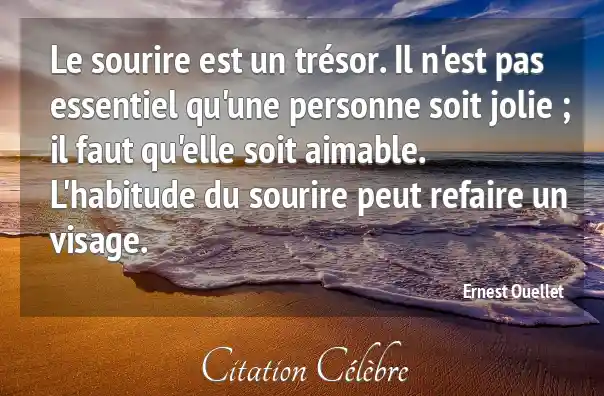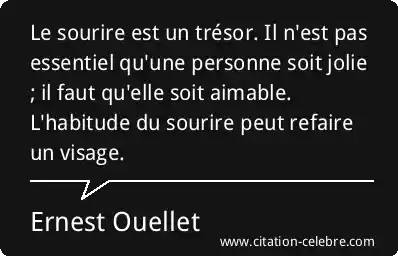 Le sourire est un trésor. Il n'est pas essentiel qu'une personne soit jolie ; il faut qu'elle soit aimable. L'habitude du sourire peut refaire un visage.