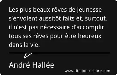 Les plus beaux rêves de jeunesse s'envolent aussitôt faits et, surtout, il n'est pas nécessaire d'accomplir tous ses rêves pour être heureux dans la vie.
