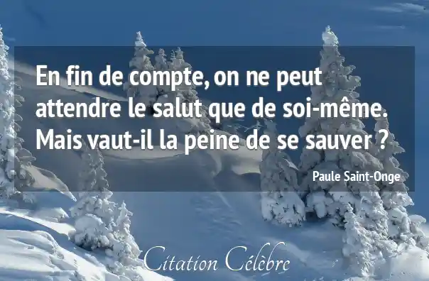 En fin de compte, on ne peut attendre le salut que de soi-même. Mais vaut-il la peine de se sauver ?