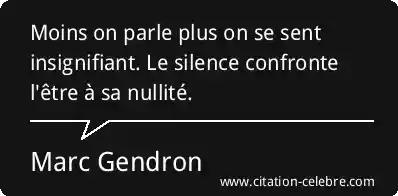 Moins on parle plus on se sent insignifiant. Le silence confronte l'être à sa nullité.