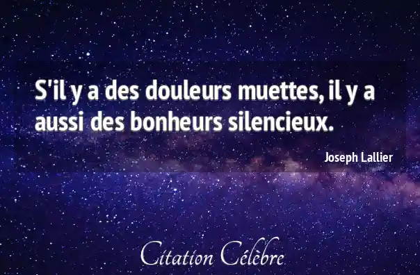 S'il y a des douleurs muettes, il y a aussi des bonheurs silencieux.
