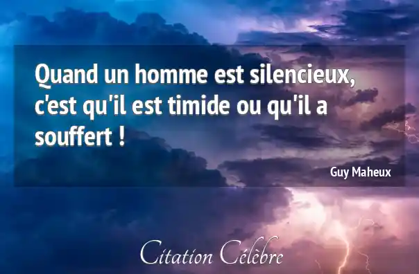 Quand un homme est silencieux, c'est qu'il est timide ou qu'il a souffert !
