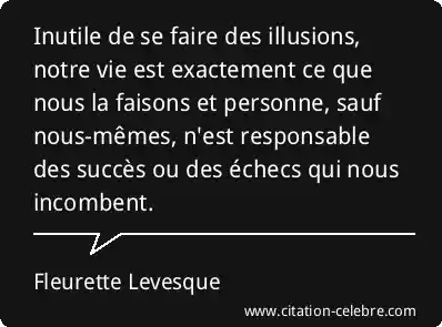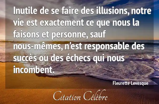 Inutile de se faire des illusions, notre vie est exactement ce que nous la faisons et personne, sauf nous-mêmes, n'est responsable des succès ou des échecs qui nous incombent.
