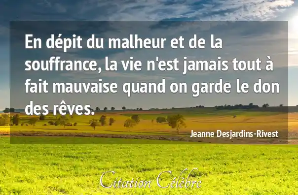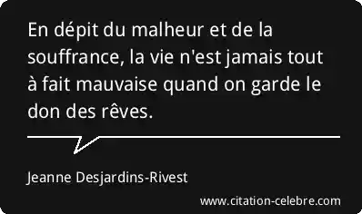 En dépit du malheur et de la souffrance, la vie n'est jamais tout à fait mauvaise quand on garde le don des rêves.