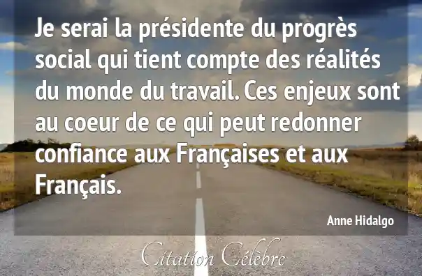 Je serai la présidente du progrès social qui tient compte des réalités du monde du travail. Ces enjeux sont au coeur de ce qui peut redonner confiance aux Françaises et aux Français.