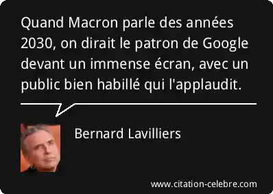 Quand Macron parle des années 2030, on dirait le patron de Google devant un immense écran, avec un public bien habillé qui l'applaudit.
