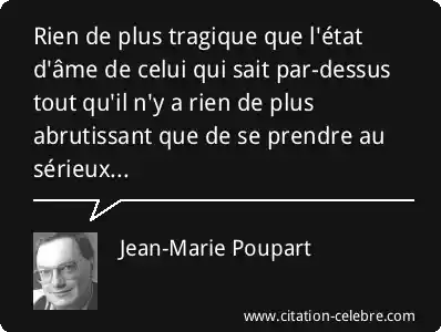 Rien de plus tragique que l'état d'âme de celui qui sait par-dessus tout qu'il n'y a rien de plus abrutissant que de se prendre au sérieux...