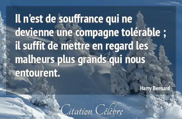 Il n'est de souffrance qui ne devienne une compagne tolérable ; il suffit de mettre en regard les malheurs plus grands qui nous entourent.