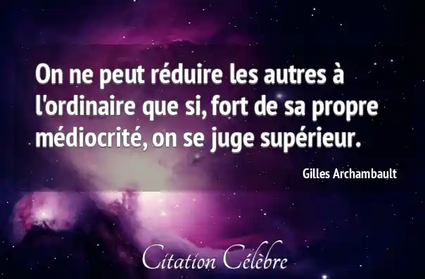 On ne peut réduire les autres à l'ordinaire que si, fort de sa propre médiocrité, on se juge supérieur.