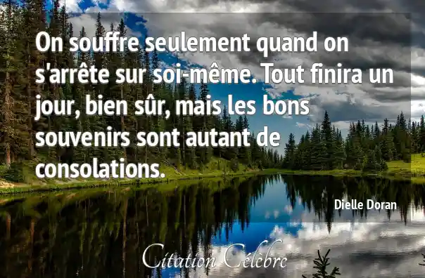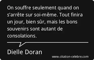 On souffre seulement quand on s'arrête sur soi-même. Tout finira un jour, bien sûr, mais les bons souvenirs sont autant de consolations.