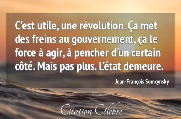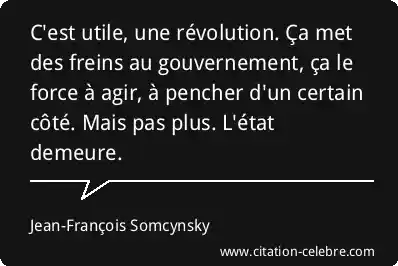 C'est utile, une révolution. Ça met des freins au gouvernement, ça le force à agir, à pencher d'un certain côté. Mais pas plus. L'état demeure.