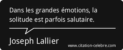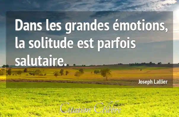 Dans les grandes émotions, la solitude est parfois salutaire.