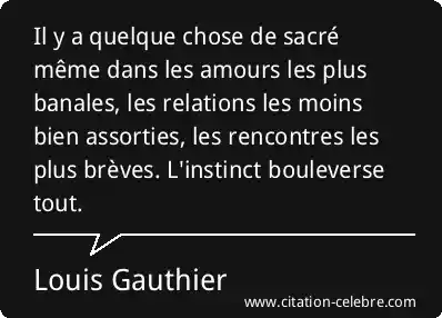 Il y a quelque chose de sacré même dans les amours les plus banales, les relations les moins bien assorties, les rencontres les plus brèves. L'instinct bouleverse tout.