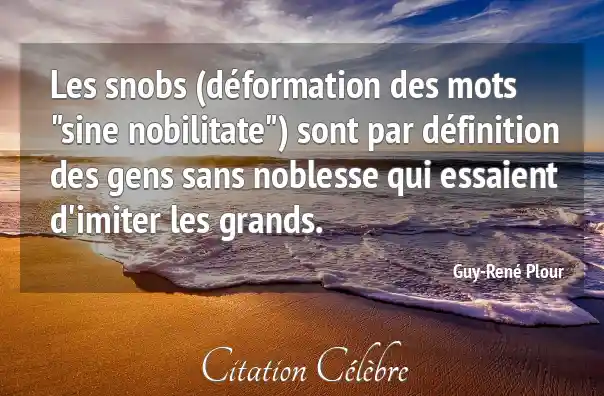 Les snobs (déformation des mots "sine nobilitate") sont par définition des gens sans noblesse qui essaient d'imiter les grands.