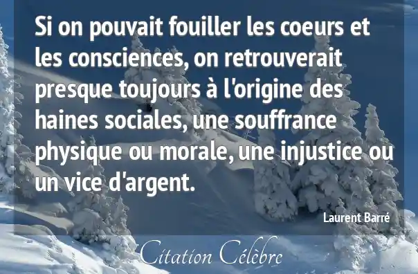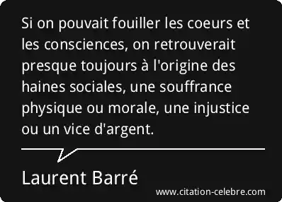 Si on pouvait fouiller les coeurs et les consciences, on retrouverait presque toujours à l'origine des haines sociales, une souffrance physique ou morale, une injustice ou un vice d'argent.