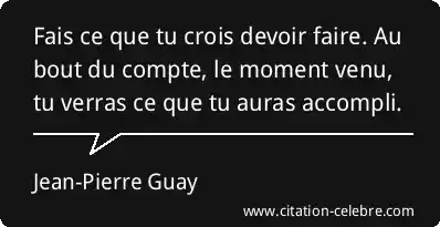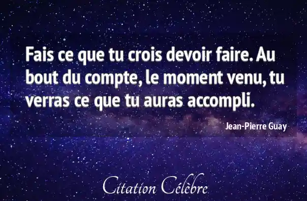 Fais ce que tu crois devoir faire. Au bout du compte, le moment venu, tu verras ce que tu auras accompli.