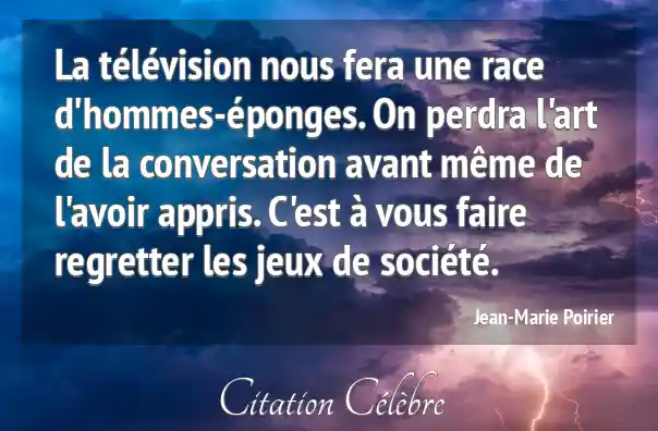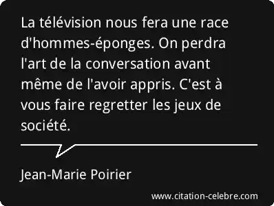 La télévision nous fera une race d'hommes-éponges. On perdra l'art de la conversation avant même de l'avoir appris. C'est à vous faire regretter les jeux de société.