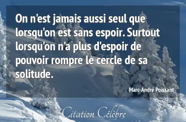 On n'est jamais aussi seul que lorsqu'on est sans espoir. Surtout lorsqu'on n'a plus d'espoir de pouvoir rompre le cercle de sa solitude.
