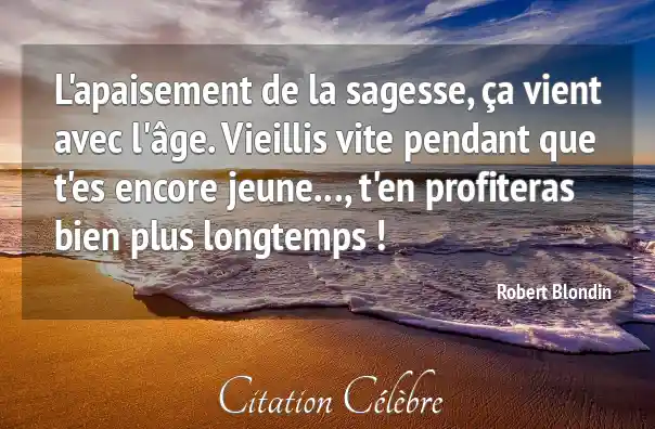 L'apaisement de la sagesse, ça vient avec l'âge. Vieillis vite pendant que t'es encore jeune..., t'en profiteras bien plus longtemps !