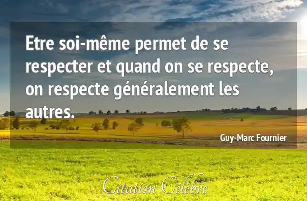 Etre soi-même permet de se respecter et quand on se respecte, on respecte généralement les autres.