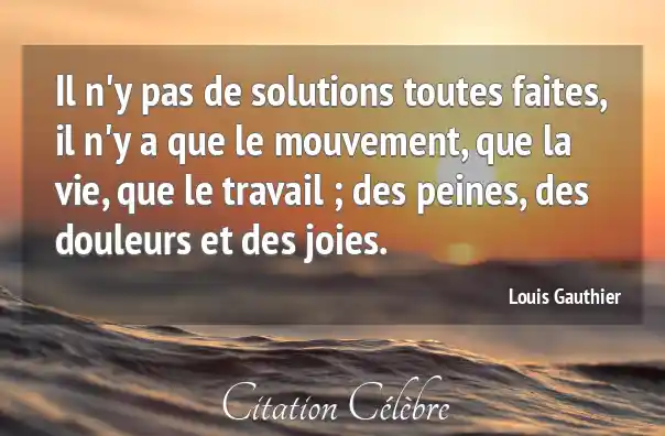 Il n'y pas de solutions toutes faites, il n'y a que le mouvement, que la vie, que le travail ; des peines, des douleurs et des joies.