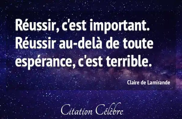 Réussir, c'est important. Réussir au-delà de toute espérance, c'est terrible.
