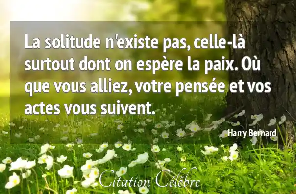 La solitude n'existe pas, celle-là surtout dont on espère la paix. Où que vous alliez, votre pensée et vos actes vous suivent.