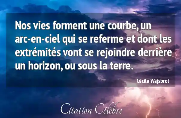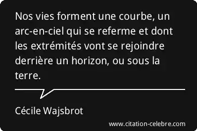 Nos vies forment une courbe, un arc-en-ciel qui se referme et dont les extrémités vont se rejoindre derrière un horizon, ou sous la terre.