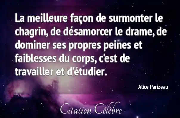 La meilleure façon de surmonter le chagrin, de désamorcer le drame, de dominer ses propres peines et faiblesses du corps, c'est de travailler et d'étudier.