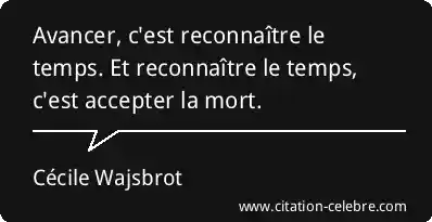 Avancer, c'est reconnaître le temps. Et reconnaître le temps, c'est accepter la mort.