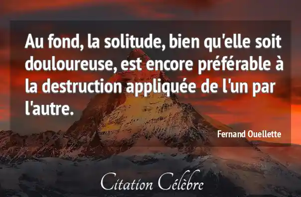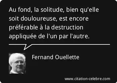 Au fond, la solitude, bien qu'elle soit douloureuse, est encore préférable à la destruction appliquée de l'un par l'autre.