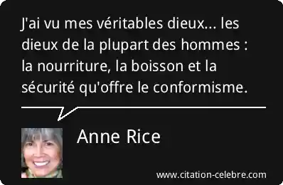 J'ai vu mes véritables dieux... les dieux de la plupart des hommes : la nourriture, la boisson et la sécurité qu'offre le conformisme.