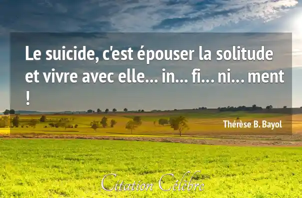 Le suicide, c'est épouser la solitude et vivre avec elle... in... fi... ni... ment !