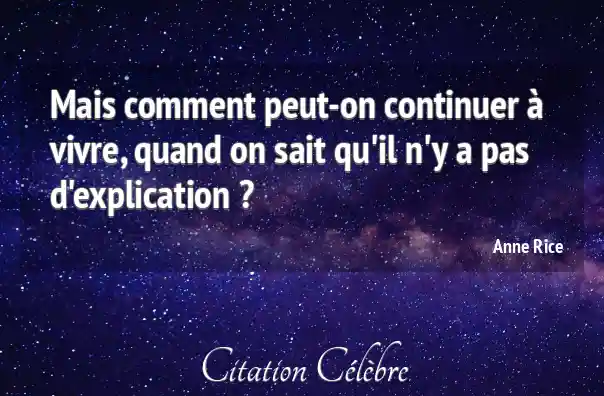 Mais comment peut-on continuer à vivre, quand on sait qu'il n'y a pas d'explication ?