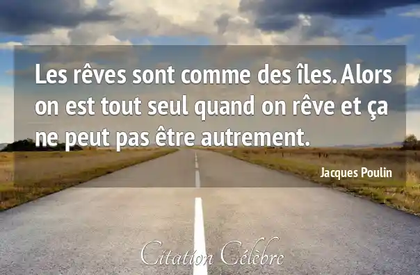 Les rêves sont comme des îles. Alors on est tout seul quand on rêve et ça ne peut pas être autrement.