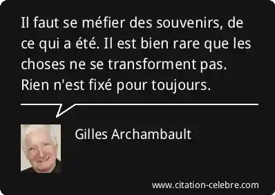 Il faut se méfier des souvenirs, de ce qui a été. Il est bien rare que les choses ne se transforment pas. Rien n'est fixé pour toujours.