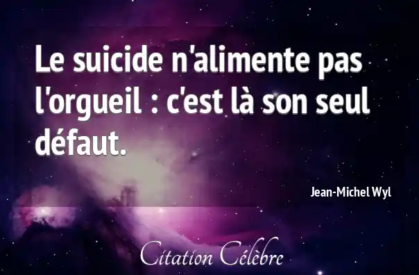 Le suicide n'alimente pas l'orgueil : c'est là son seul défaut.