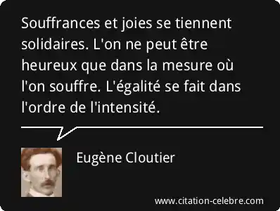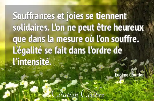 Souffrances et joies se tiennent solidaires. L'on ne peut être heureux que dans la mesure où l'on souffre. L'égalité se fait dans l'ordre de l'intensité.