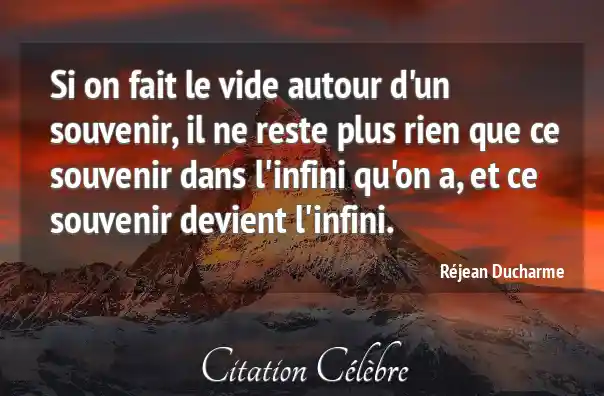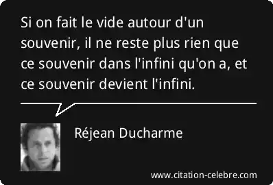 Si on fait le vide autour d'un souvenir, il ne reste plus rien que ce souvenir dans l'infini qu'on a, et ce souvenir devient l'infini.